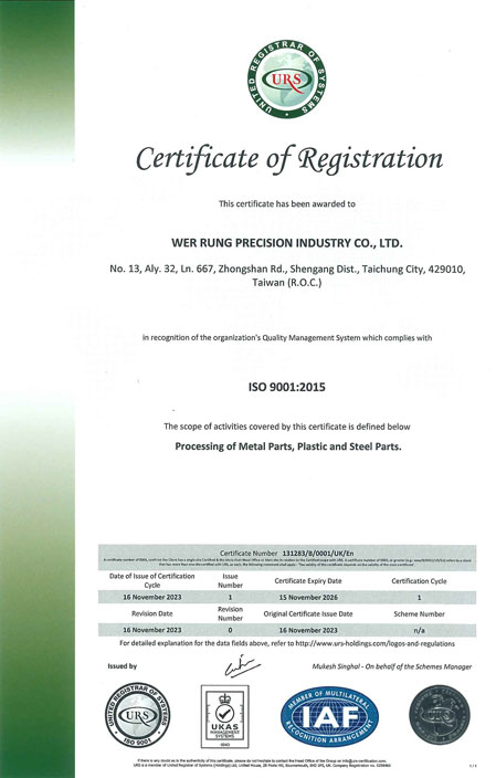 為確保加工產品品質的一致性與穩定性,本公司經由嘉特國際驗證稽核通過 ISO 9001國際標準,品質保證制度的認證,并逐年透過内外部的稽核,確保我們的品保系統有效運作。